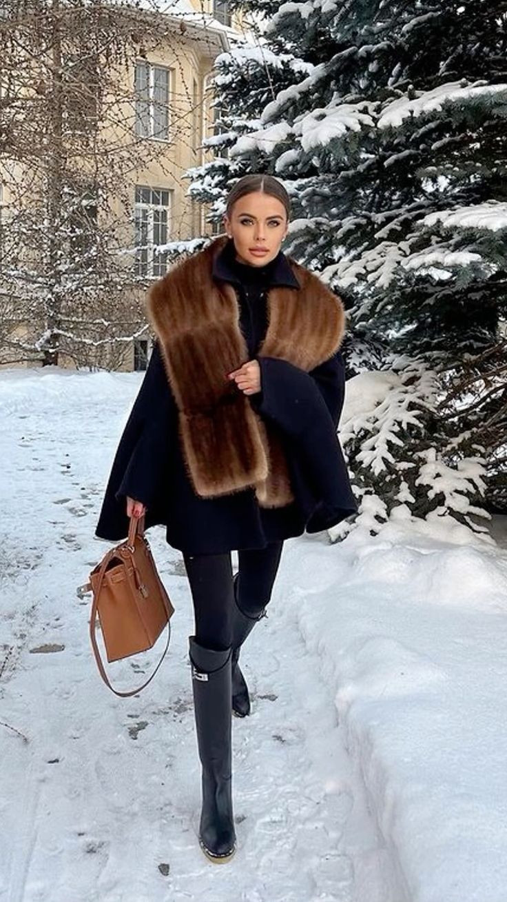 Élégance Noire – Schwarzer Pelzmantel mit Gürtel